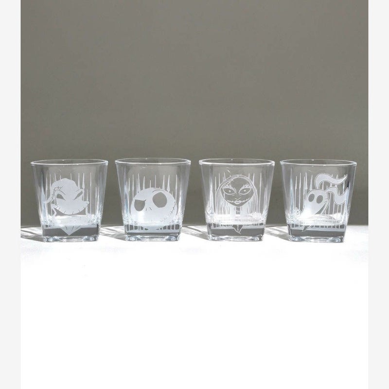 We will take that on the rocks please. This rocks glass set from The Nightmare Before Christmas features etched designs of Jack Sally Zero & Oogie Boogie.