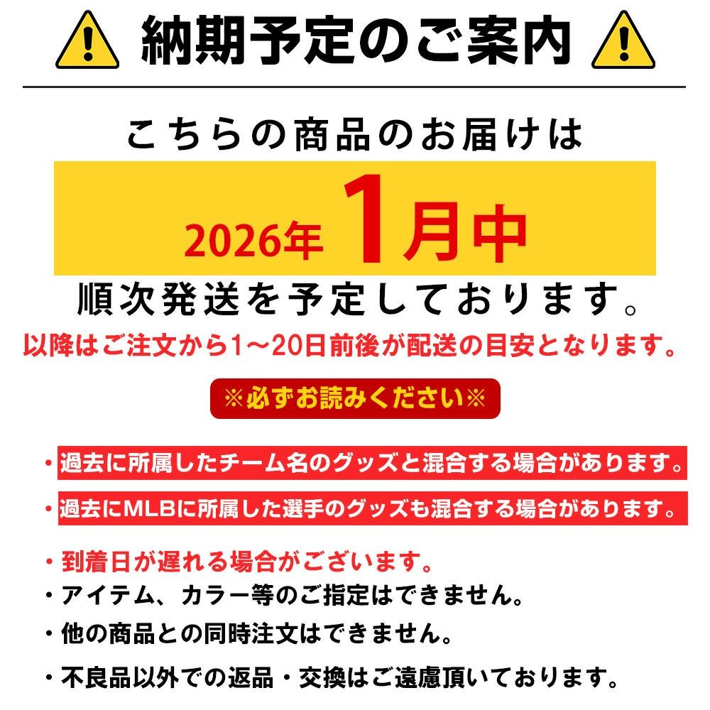 他の画像を見る セレクション数量限定!2026 MLB 福袋 10万円ver! MLB 福袋 2026 メジャーリーグ 10万 ラッキーバッグ 福袋 ¥ 110,000 税込 カートに入れる お気に入りに登録する