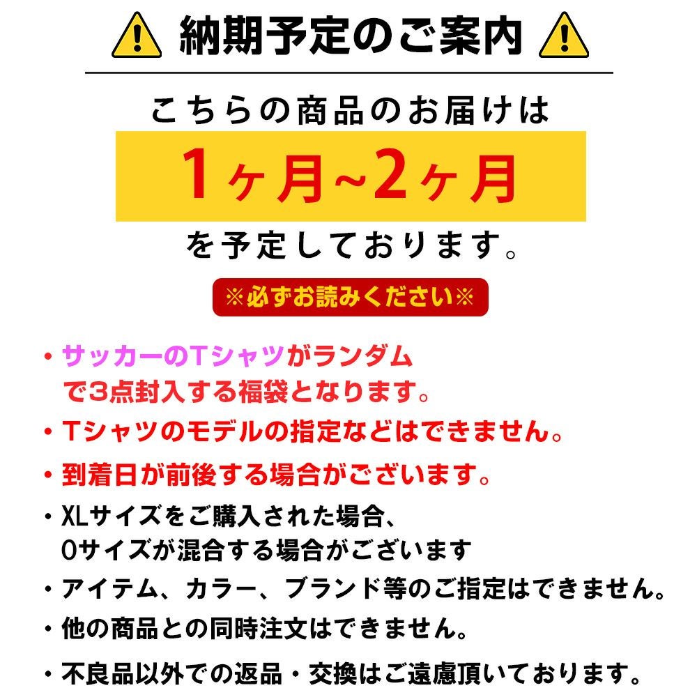 他の画像を見る 創業30年目突入記念!サッカー Tシャツ 3点セット福袋! SOCCER サッカー Tシャツ3点セット 福袋 創業30年目突入記念 創業祭 福袋 ¥ 16,500 税込 カートに入れる お気に入りに登録する