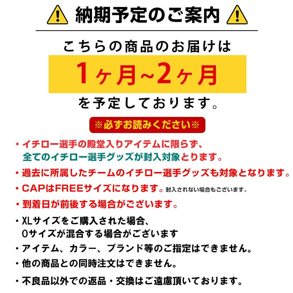 他の画像を見る 創業30年目突入記念 イチロー氏 殿堂入り記念福袋! MLB イチロー 殿堂入り記念 福袋 創業30年目突入記念 創業祭 Hall Of Fame 福袋 ¥ 55,000 税込 カートに入れる お気に入りに登録する
