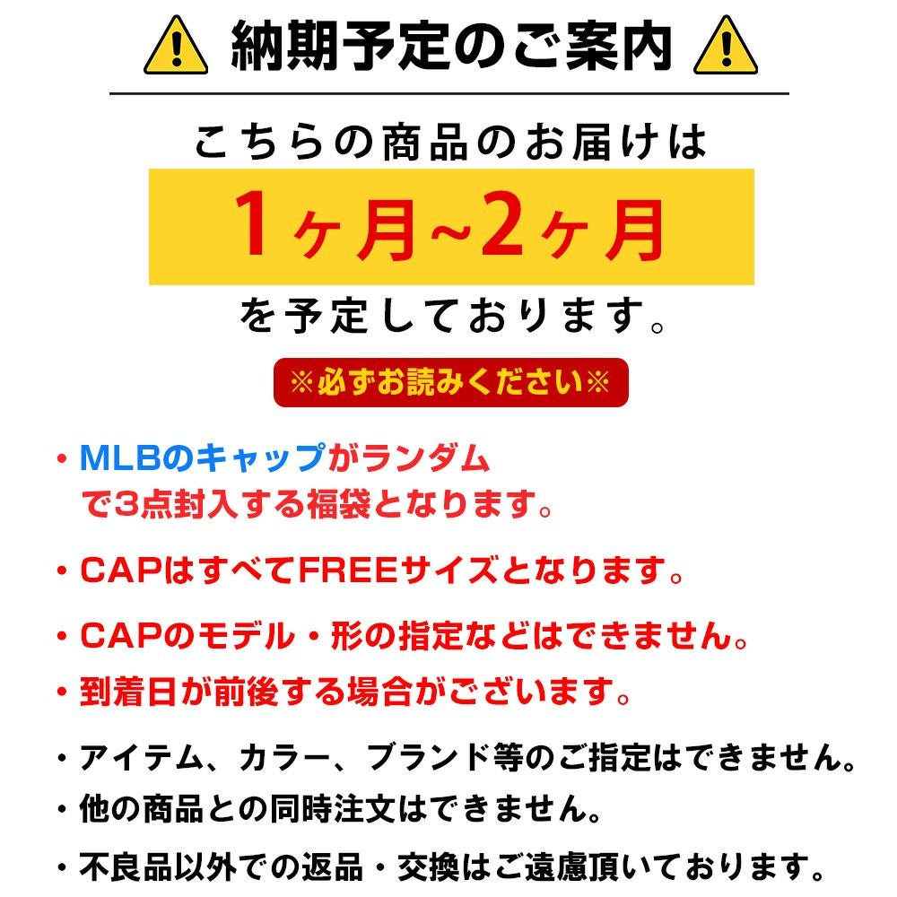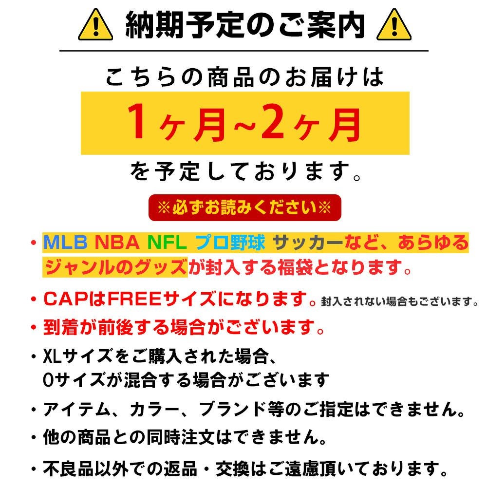 他の画像を見る セレクション数量限定!2026 MLB 福袋 5万円ver! MLB 福袋 2026 メジャーリーグ 5万 ラッキーバッグ 福袋 ¥ 55,000 税込 カートに入れる お気に入りに登録する