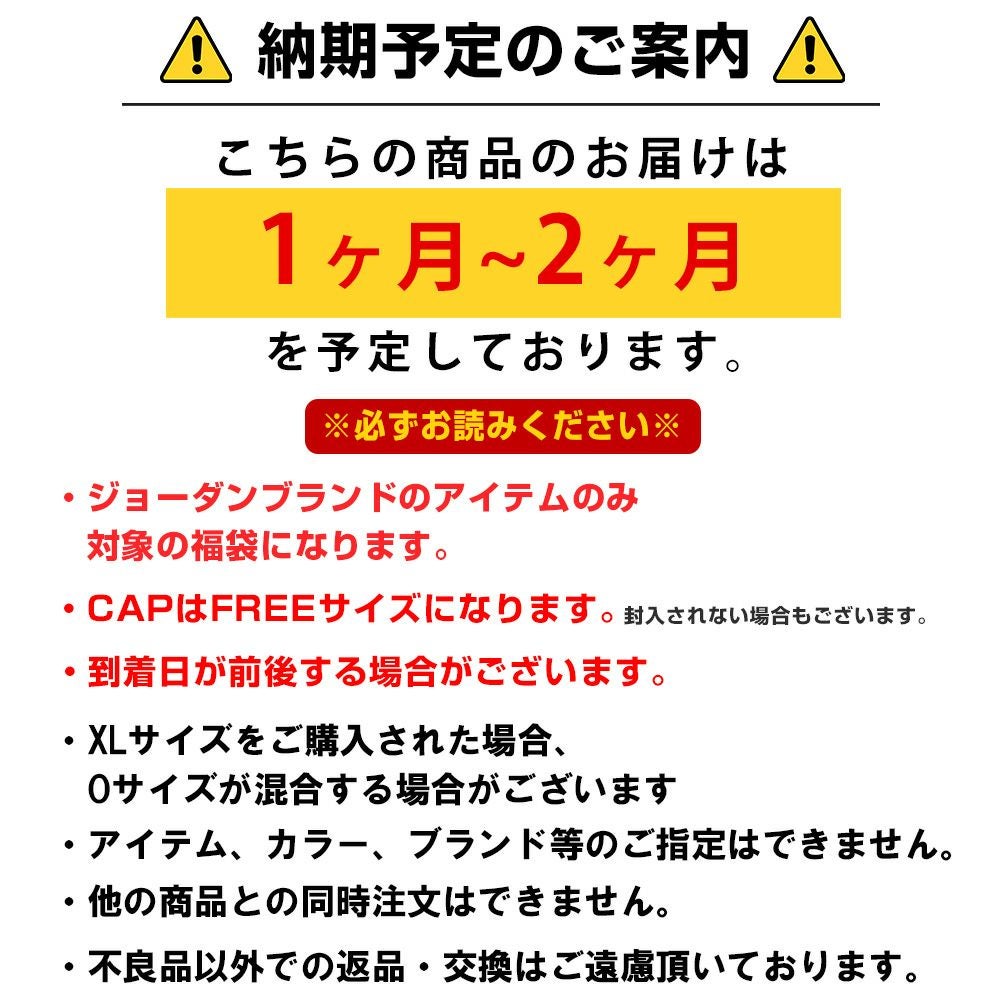 他の画像を見る 創業30年目突入記念 ジョーダンブランド 福袋! JORDAN 福袋 創業30年目突入記念 ジョーダンブランド 創業祭 福袋 ¥ 55,000 税込 カートに入れる お気に入りに登録する