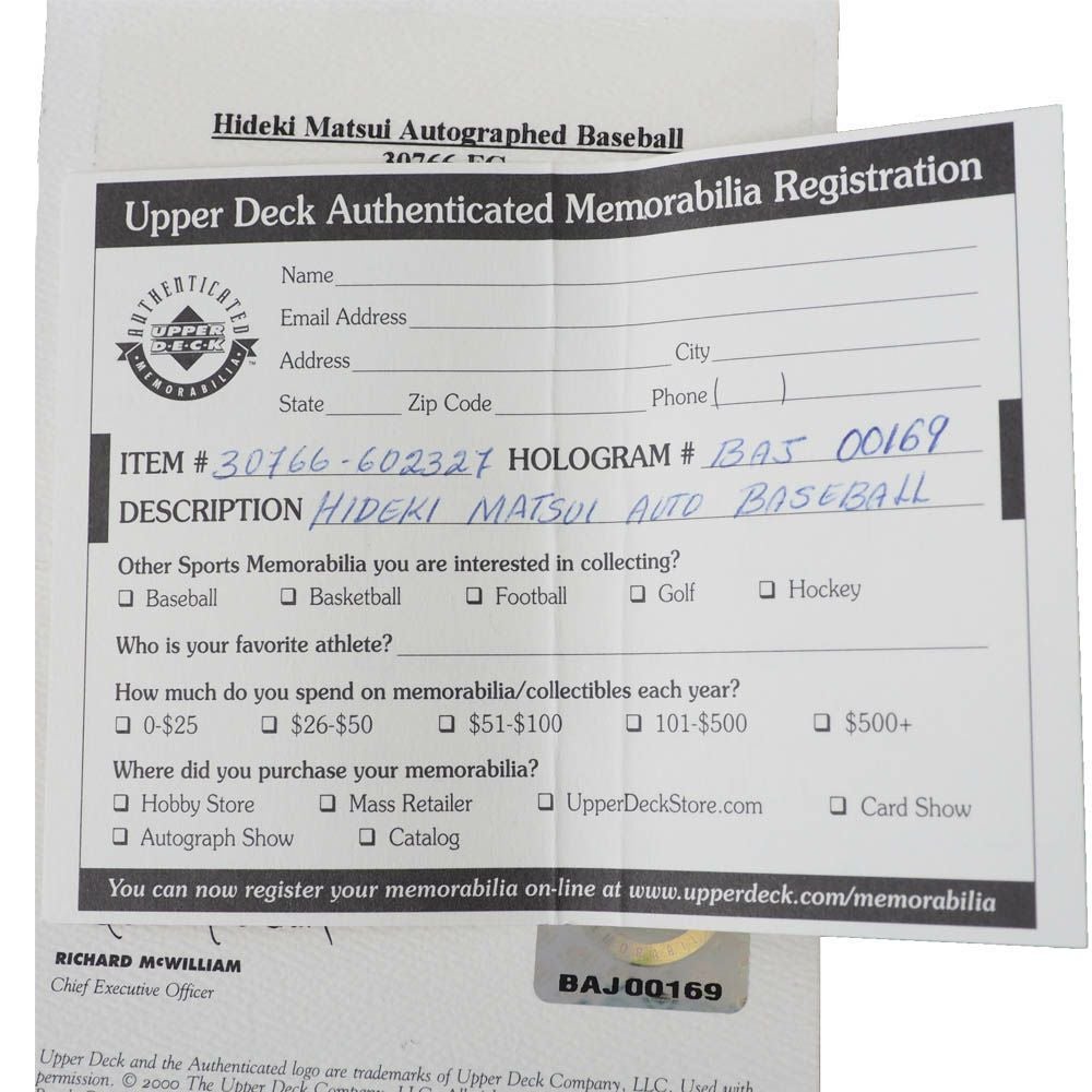 他の画像を見る "ゴジラ"松井秀喜氏直筆サインボール! MLB ヤンキース 松井 秀喜 2003 オートグラフ 直筆サイン入りボール Upper Deck ¥ 60,500 税込 在庫切れ "ゴジラ"松井秀喜氏直筆サインボール! カートに入れる お気に入りに登録する