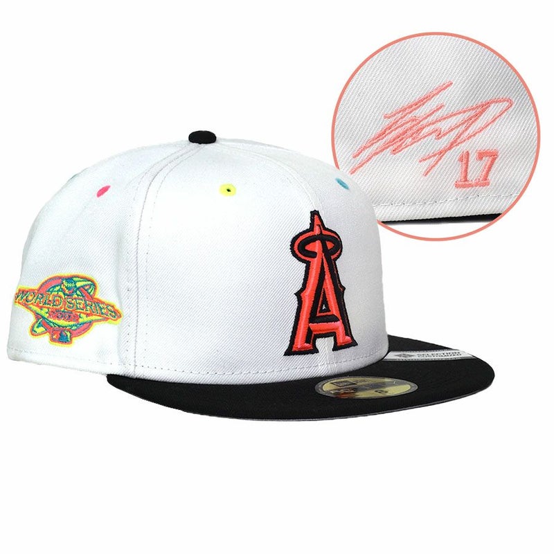MLB 大谷翔平 エンゼルス キャップ サイン刺繍 ワールドシリーズ2002 優勝 59FIFTY ピンクサイン ニューエラ/New Era ホワイト