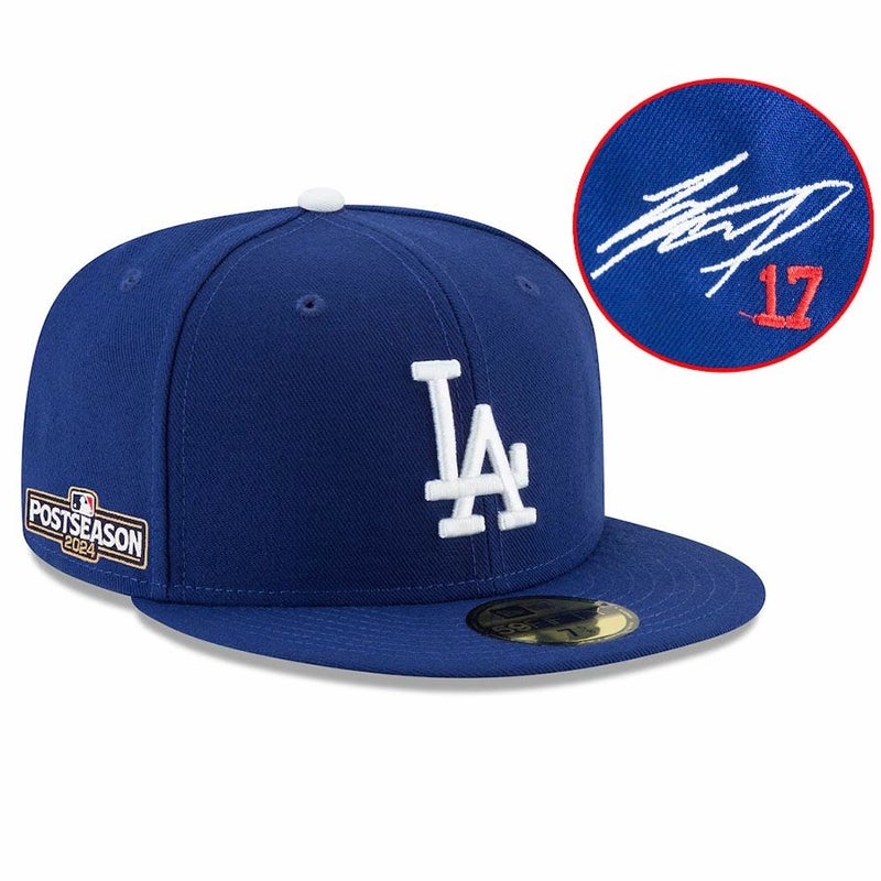 関連キーワード[キャップ][帽子][【海外カスタム品】Customized 2024 MLB Postseason Side Patch 59FIFTY Fitted Hat (White Player Sign/Red Number)][Los Angeles Dodgers][Shohei Ohtani #17][Royal][メジャーリーグ 大リーグ][LAD]