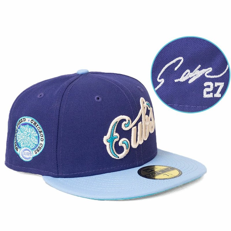 MLB 鈴木誠也 カブス キャップ 【海外カスタム】サイン刺繍 59FIFTY ニューエラ/New Era パープル スカイブルー