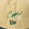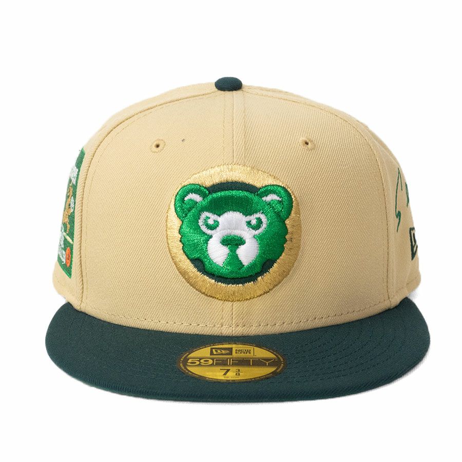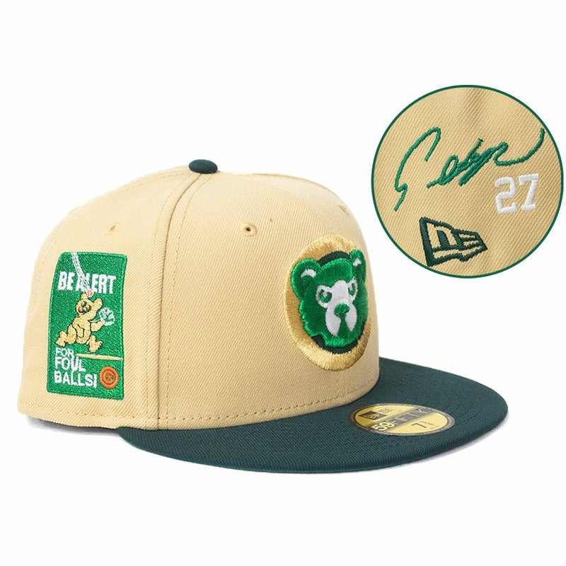 MLB 鈴木誠也 カブス キャップ 【海外買付】ファールボールに注意パッチ 59FIFTY サイン刺繍 ニューエラ/New Era ゴールド グリーン