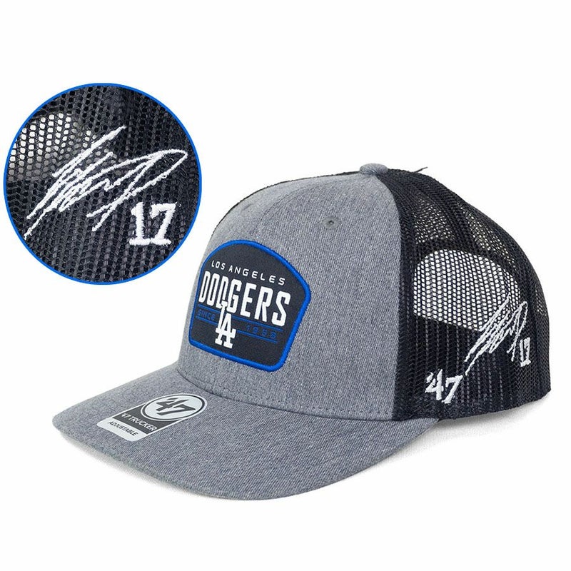 MLB 大谷翔平 ドジャース キャップ 【海外買付】Slate Trucker Adjustable サイン刺繍 47Brand グレー ブラック