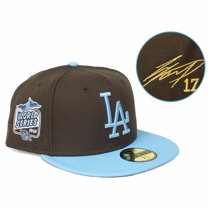 関連キーワード[キャップ][帽子][【海外買付カスタム品】1965 World Series Side Patch Muddy Waters 59FIFTY Fitted Hat (Gold Sign)][Los Angeles Dodgers][Shohei Ohtani #17][Dark Brown/Sky Blue][メジャーリーグ 大リーグ][LAD]