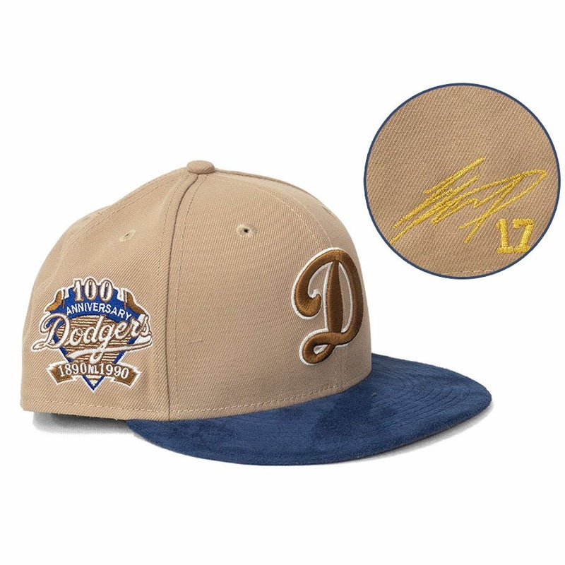 MLB 大谷翔平 ドジャース キャップ 【海外買付】100周年 Patch 59FIFTY Fitted サイン刺繍 ニューエラ/New Era キャメル Dロゴ