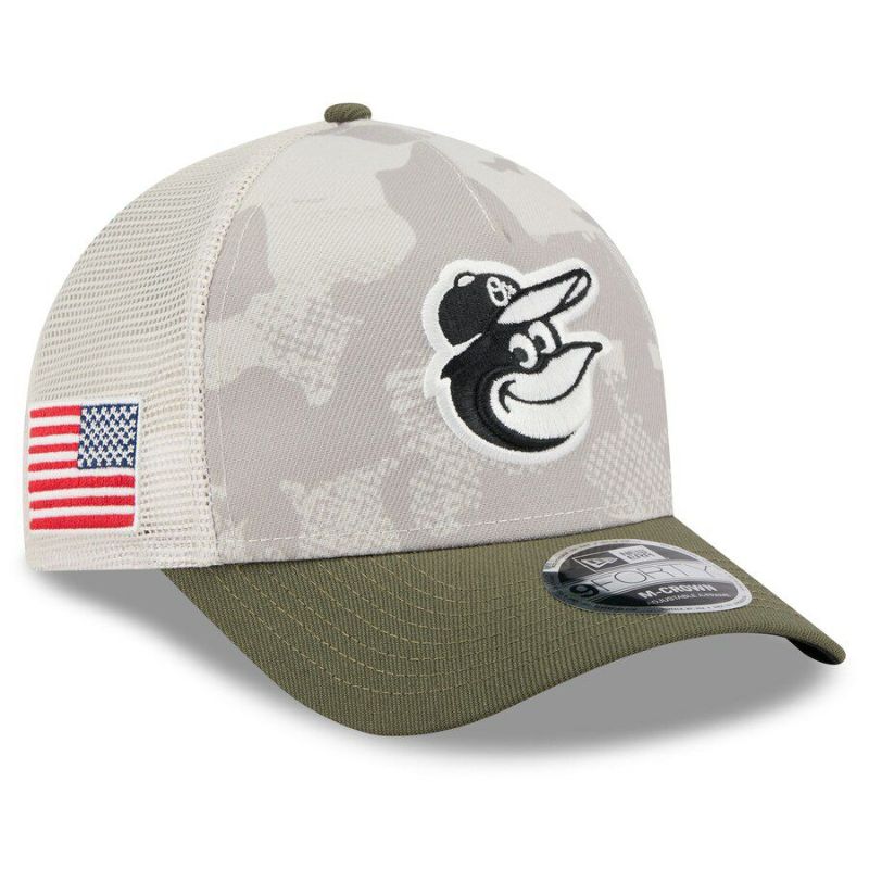 関連キーワード[キャップ][帽子][【海外モデル】 2025 Armed Forces Day 9FORTY Adjustable Hat M-Crown ][Baltimore Orioles][Light Beige/Olive][メジャーリーグ 大リーグ][BAL]