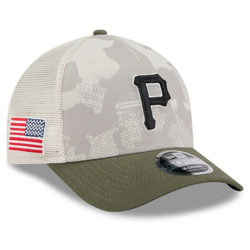 関連キーワード[キャップ][帽子][【海外モデル】 2025 Armed Forces Day 9FORTY Adjustable Hat M-Crown ][Pittsburgh Pirates][Light Beige/Olive][メジャーリーグ 大リーグ][PIT]