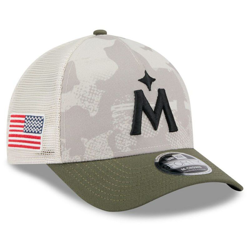 関連キーワード[キャップ][帽子][【海外モデル】 2025 Armed Forces Day 9FORTY Adjustable Hat M-Crown ][Minnesota Twins][Light Beige/Olive][メジャーリーグ 大リーグ][MIN]