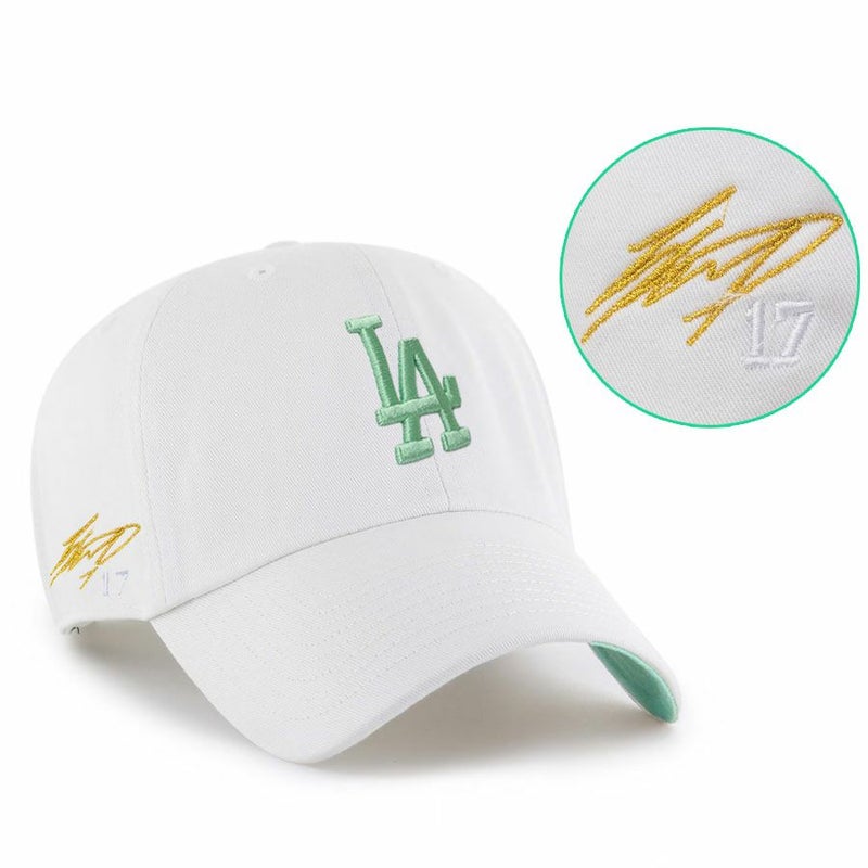 MLB 大谷翔平 ドジャース キャップ 【海外買付】サイン刺繍 Clean Up Adjustable Hat 47Brand ホワイト ヘムロック