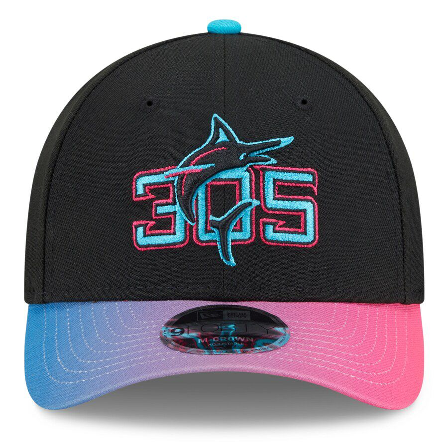 MLB マーリンズ キャップ 2025 シティーコネクト 9FORTY M-Crown Adjustable Hat ニューエラ/New Era ブラック ピンク