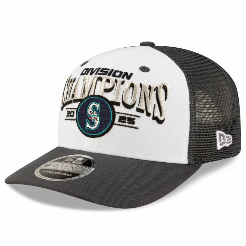 MLB マリナーズ キャップ 2025 AL West 地区優勝 ロッカールーム 9SEVENTY トラッカー ニューエラ/New Era ブラック ホワイトPST25