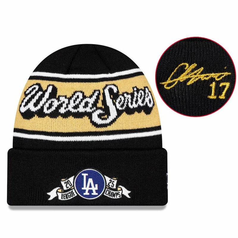 関連キーワード[ニット帽][帽子][【海外カスタム品】2025 National League Champions Locker Room Cuffed Knit (Gold Player Sign/Gold Number)][Los Angeles Dodgers][Shohei Ohtani #17][Black][メジャーリーグ 大リーグ][LAD]