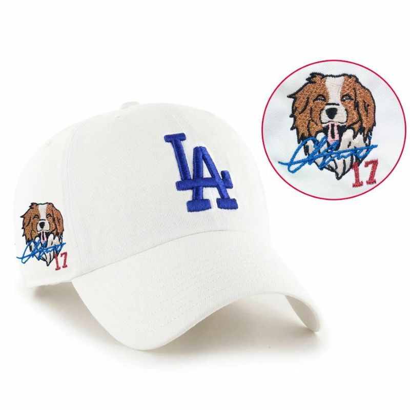 MLB 大谷翔平 ドジャース キャップ 【セレクション特注】サイン刺繍 Laughing Deluxe デコピン Clean Up Cap 47Brand ホワイト
