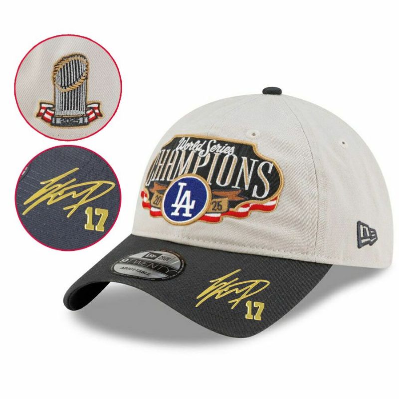関連キーワード[キャップ][帽子][【海外カスタム品】Chrome Patch 2025 World Series Champions Locker Room 9TWENTY Adjustable Hat (Gold Player Sign/Gold Number)][Los Angeles Dodgers][Shohei Ohtani #17][Cream/Charcoal][メジャーリーグ 大リーグ][LAD]