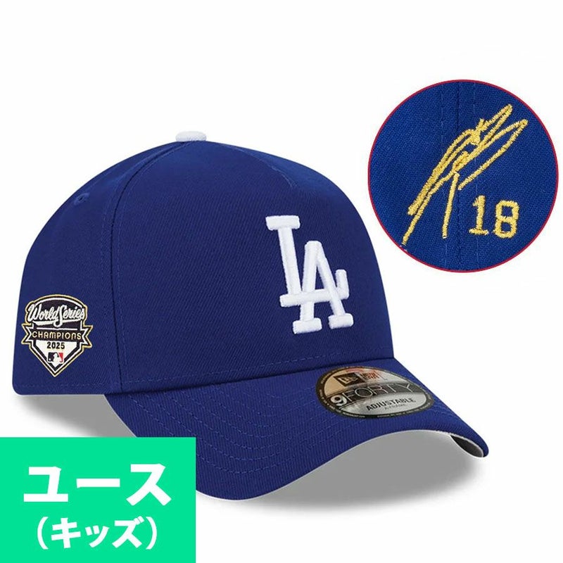 MLB 山本由伸 ドジャース キャップ ユース キッズ ワールドシリーズ 2025 優勝 Side Patch Replica 9FORTY サイン刺繍 ニューエラ/New Era