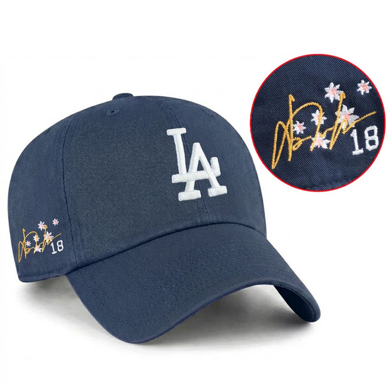 MLB 山本由伸 ドジャース キャップ 【現地買付特注】デコピン デコイ 漢字 & 桜 Sakura Blossom Clean Up Cap サイン刺繍 47Brand ネイビー