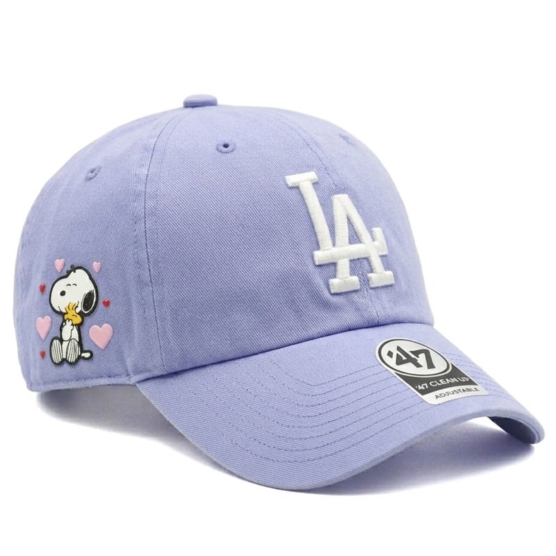 MLB ドジャース キャップ 【現地買付特注】スヌーピー Hugging Woodstock Side Patch Clean Up Cap チャーリー・ブラウン 47Brand パープル