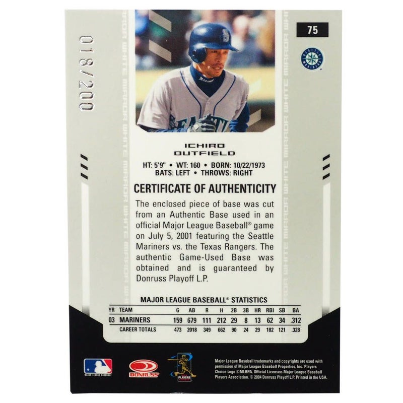 MLB イチロー シアトル・マリナーズ トレーディングカード/スポーツカード 2004 #75 ゲーム ユーズド ベース 18/200 Donruss