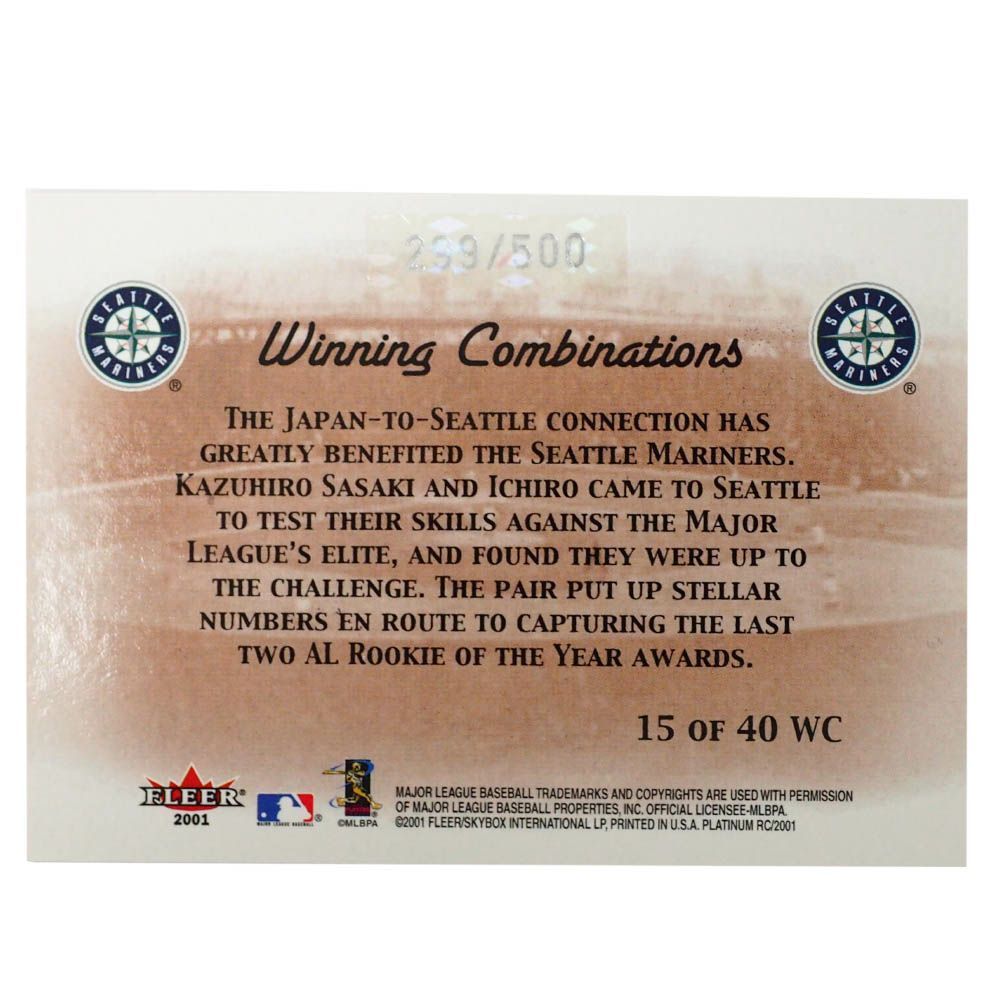 関連キーワード[スポーツカード][トレカ][Fleer 2001 Rookie Ichiro Sasaki299/500 15 of 40 wc][メジャーリーグ 大リーグ]