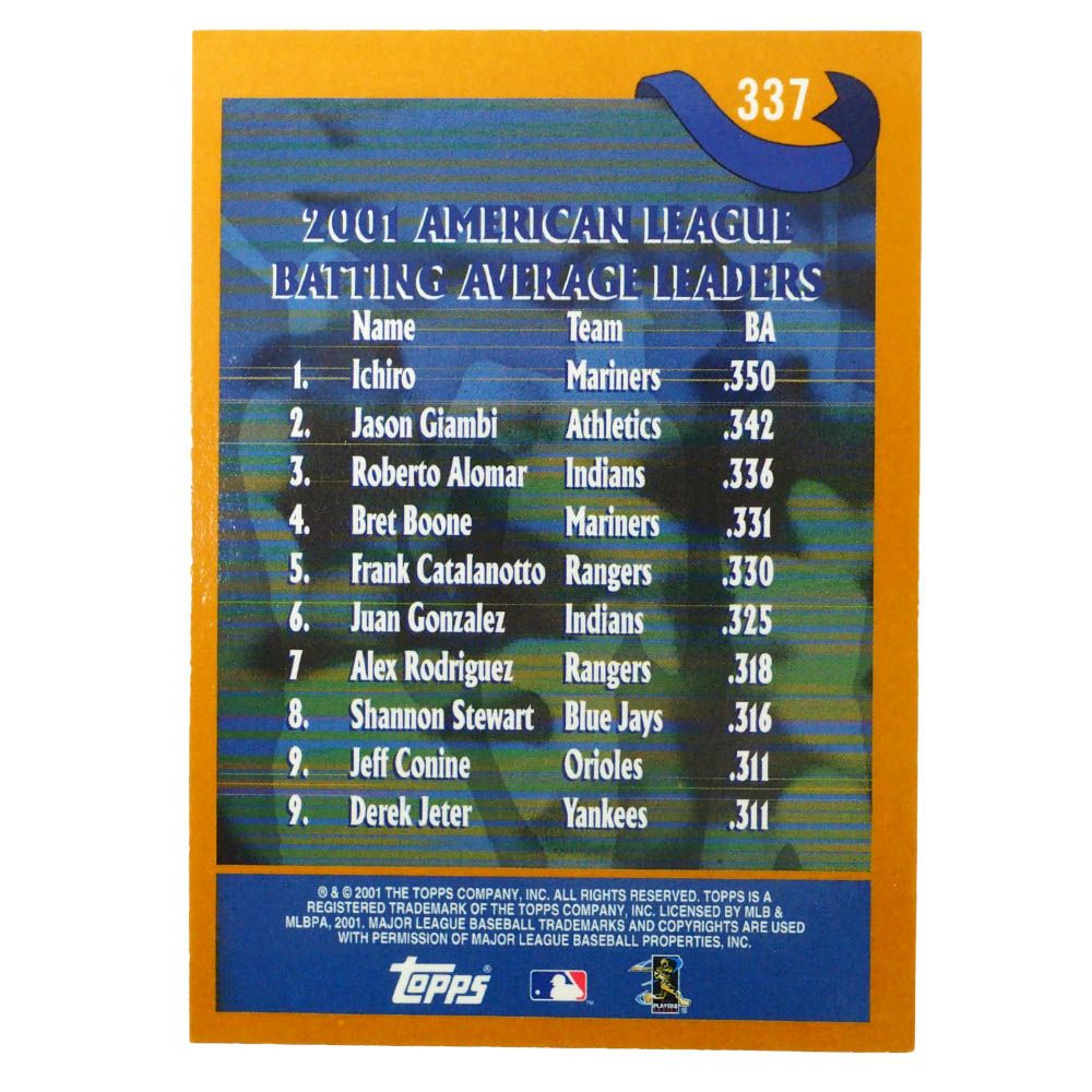 関連キーワード[スポーツカード][トレカ][Topps 2001 League Leaders #337 Ichiro Giambi Alomer][メジャーリーグ 大リーグ]