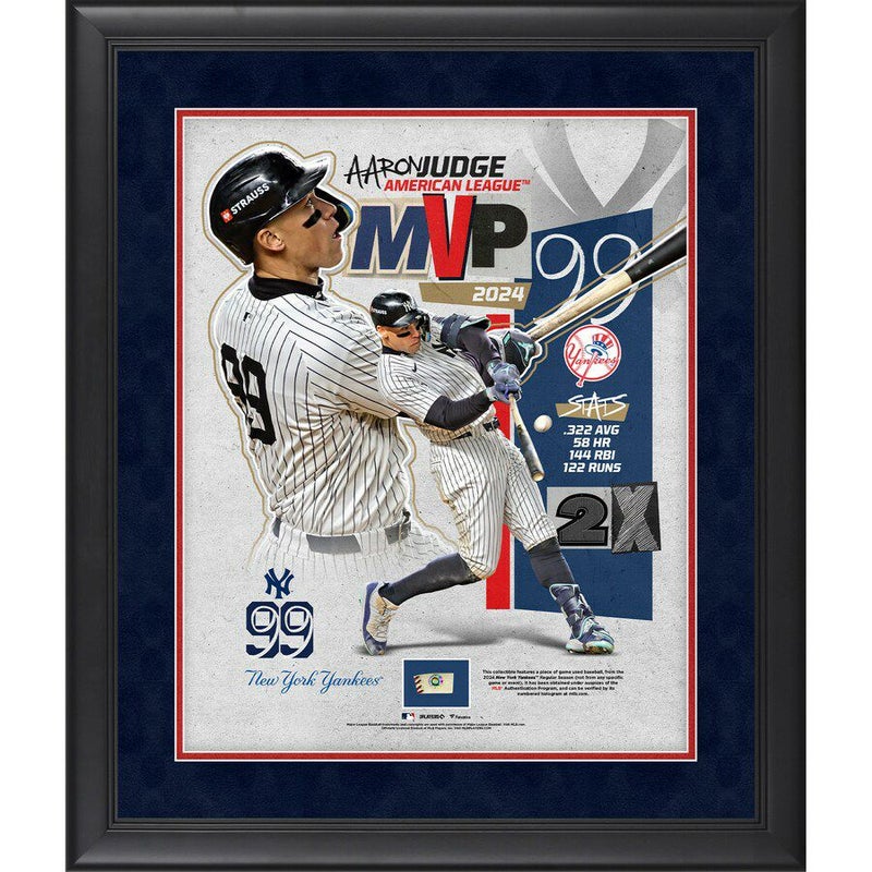 MLB アーロン・ジャッジ ヤンキース フォトフレーム 2024 ア・リーグMVP受賞記念 2024シーズン 実使用ボールピース Fanatics Authentic