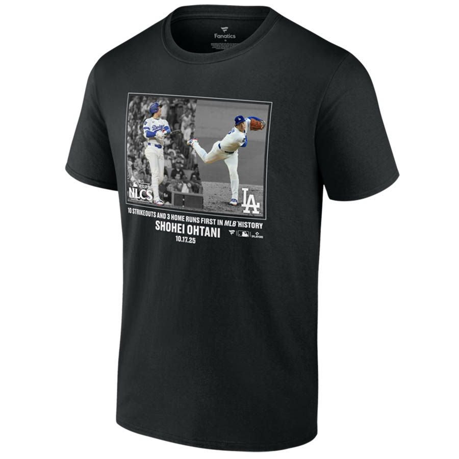 他の画像を見る MLB x ドジャース 2025ナリーグ優勝記念アイテム MLB 大谷翔平 ドジャース Tシャツ 2025ポストシーズン ナ・リーグ優勝 Moment T-Shirt Fanatics ブラック ¥ 13,860 税込 カートに入れる お気に入りに登録する