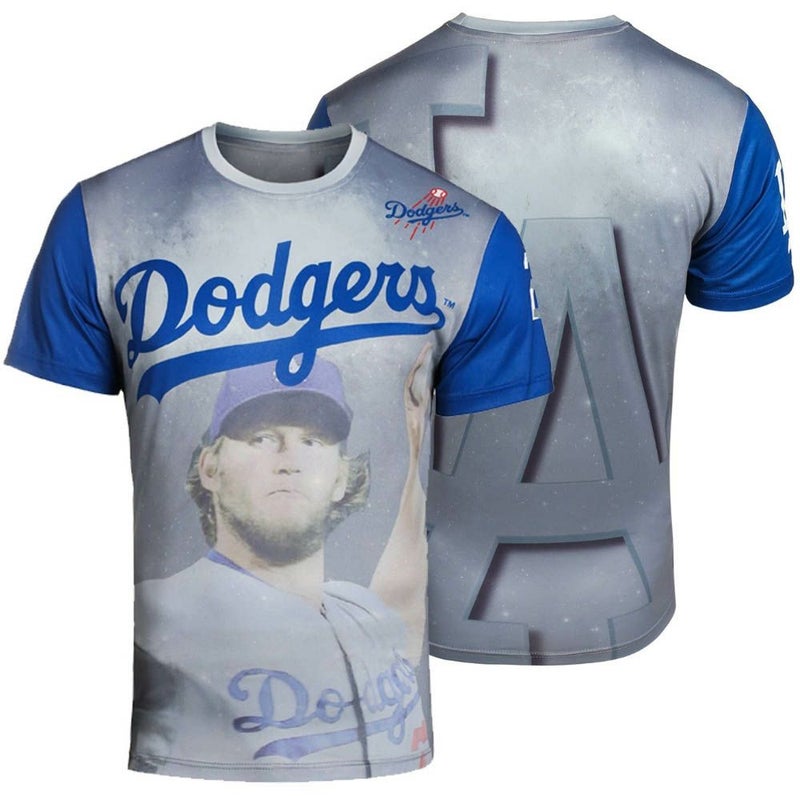 カーショウ選手を全面にプリント!ドジャースTシャツ!