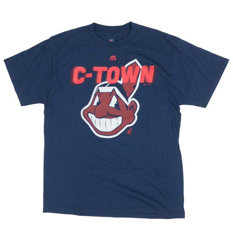 MLB クリーブランド・インディアンス Tシャツ C-タウン ビッグワフー マジェスティック/Majestic ネイビー