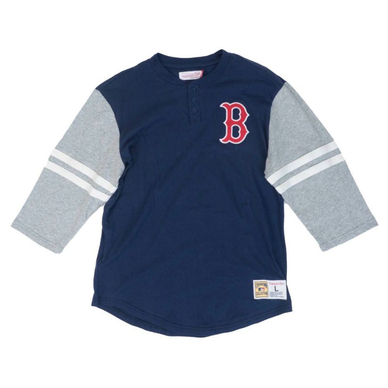レッドソックス Tシャツ tシャツ 7分袖 メンズ MLB ミッチェル&ネス Mitchell & Ness ネイビー グレー 3/4スリーブ