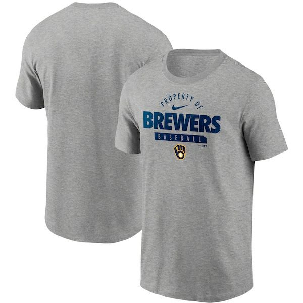 ブリュワーズ Tシャツ ナイキ Nike グレー メンズ 半袖 tシャツ MLB Primetime Property Of Practice T-Shirt 21nrs