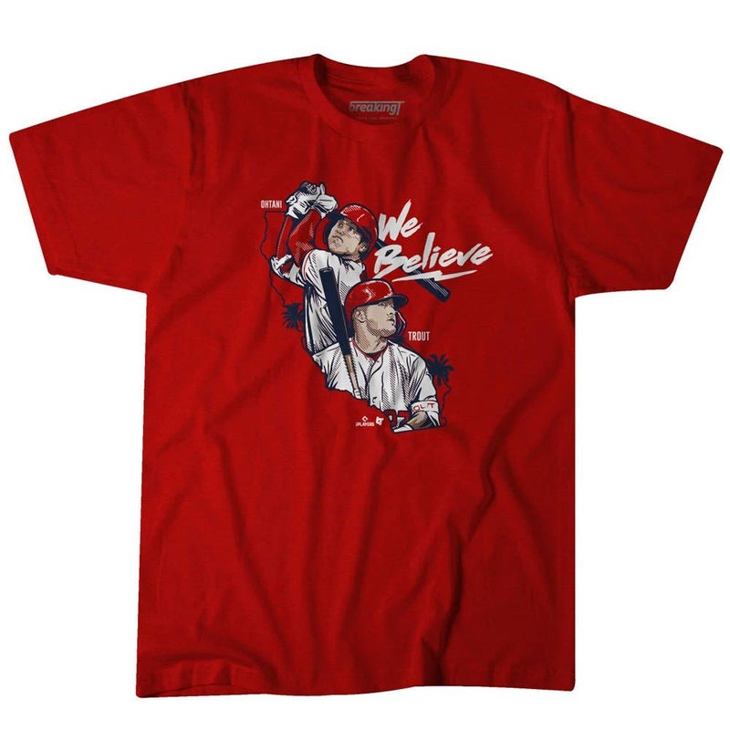 【海外限定版】大谷翔平 マイク・トラウト Tシャツ MLB エンゼルス We Believe T-Shirt Breaking T レッド