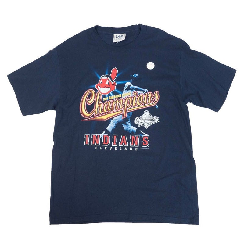 MLB インディアンス Tシャツ ワフー酋長 Chief Wahoo 1997 ア・リーグ優勝 1点物 Lee Sport ネイビー