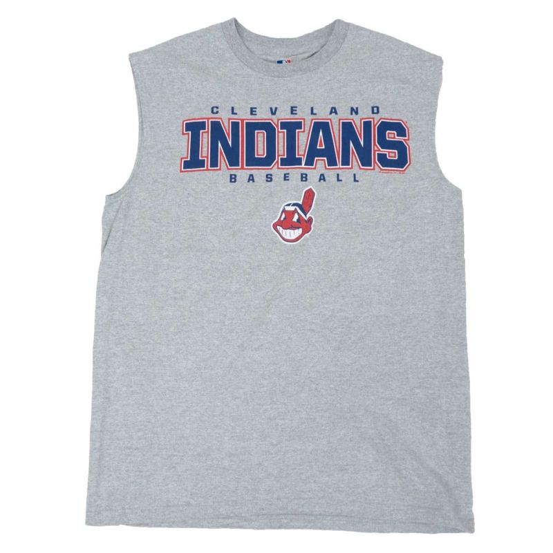 MLB インディアンス Tシャツ ワフー酋長 Chief Wahoo Wordmark ノースリーブ グレー