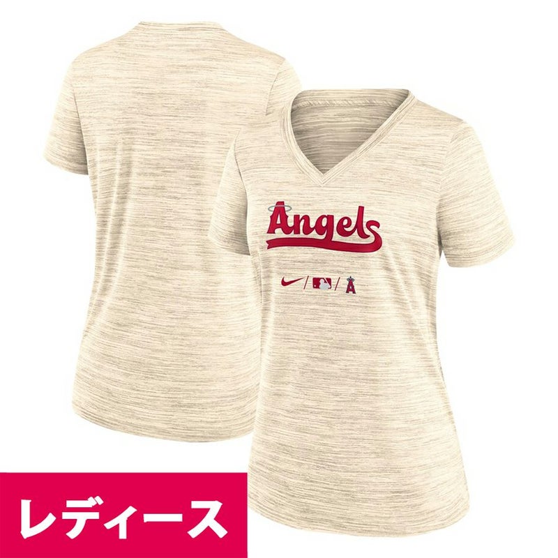MLB エンゼルス Tシャツ レディース 2022 シティーコネクト Authentic Collection Velocity Vネック T-Shirt ナイキ/Nike クリーム