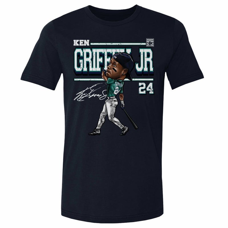 MLB ケン・グリフィー・ジュニア マリナーズ Tシャツ Derby Cartoon WHT T-Shirt 500Level True Navy