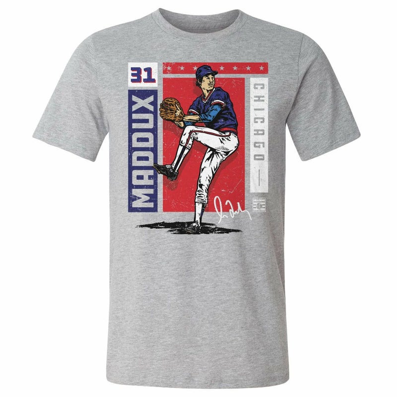 MLB グレッグ・マダックス カブス Tシャツ Chicago Card Stat WHT 500LEVEL ヘザーグレー