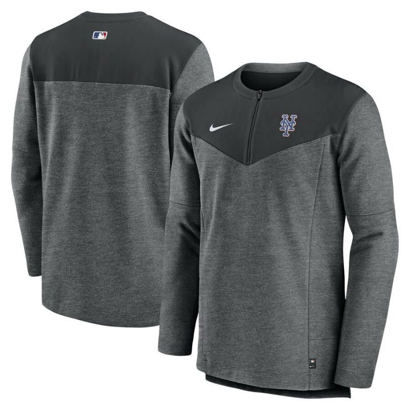 MLB メッツ Tシャツ ドライフィット ゲームタイム ハーフジップ ロングスリーブ ナイキ/Nike ブラック ヘザー