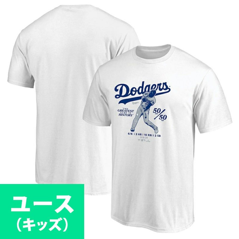 MLB 大谷翔平 ドジャース Tシャツ ユース キッズ 50/50達成記念 6 for 6 Fanatics JP ホワイト