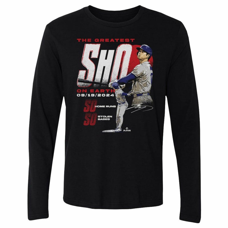 MLB 大谷翔平 ドジャース Tシャツ 【New Model】 50/50達成記念 Club ロンT ロングスリーブ 500Level ブラック