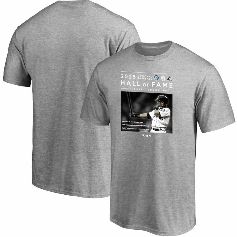MLB イチロー マリナーズ Tシャツ 2025 HOF記念 アメリカ野球殿堂入り Tシャツ Fanatics JP グレー