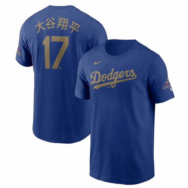 MLB 大谷翔平 ドジャース Tシャツ 【海外モデル】ゴールドコレクションWS2024優勝 漢字 ネーム&ナンバー ナイキ/Nike ロイヤル
