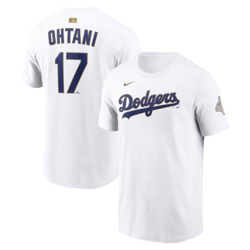 MLB 大谷翔平 ドジャース Tシャツ 【海外モデル】WS2025優勝 ゴールドコレクション ネーム&ナンバー ナイキ/Nike ホワイト