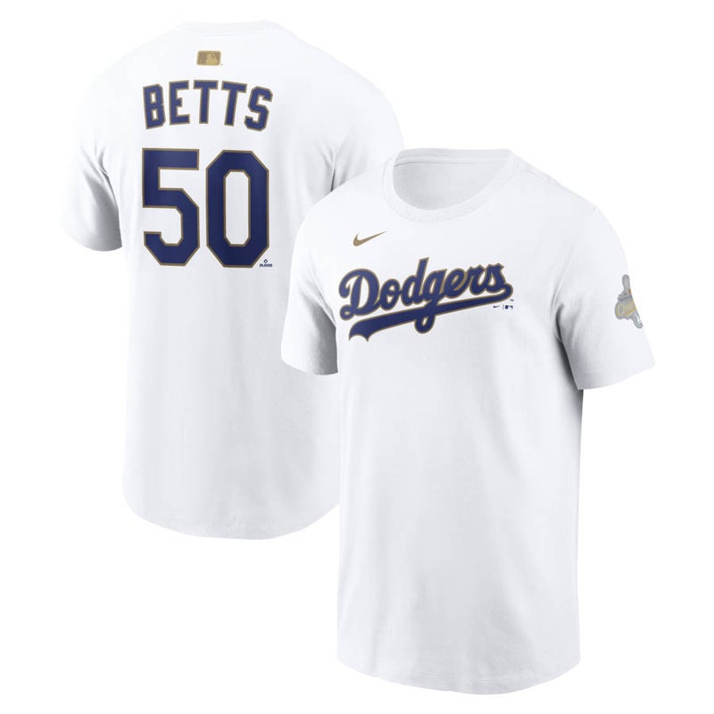 MLB ムーキー・ベッツ ドジャース Tシャツ 【海外モデル】WS2025優勝 ゴールドコレクション ネーム&ナンバー ナイキ/Nike ホワイト