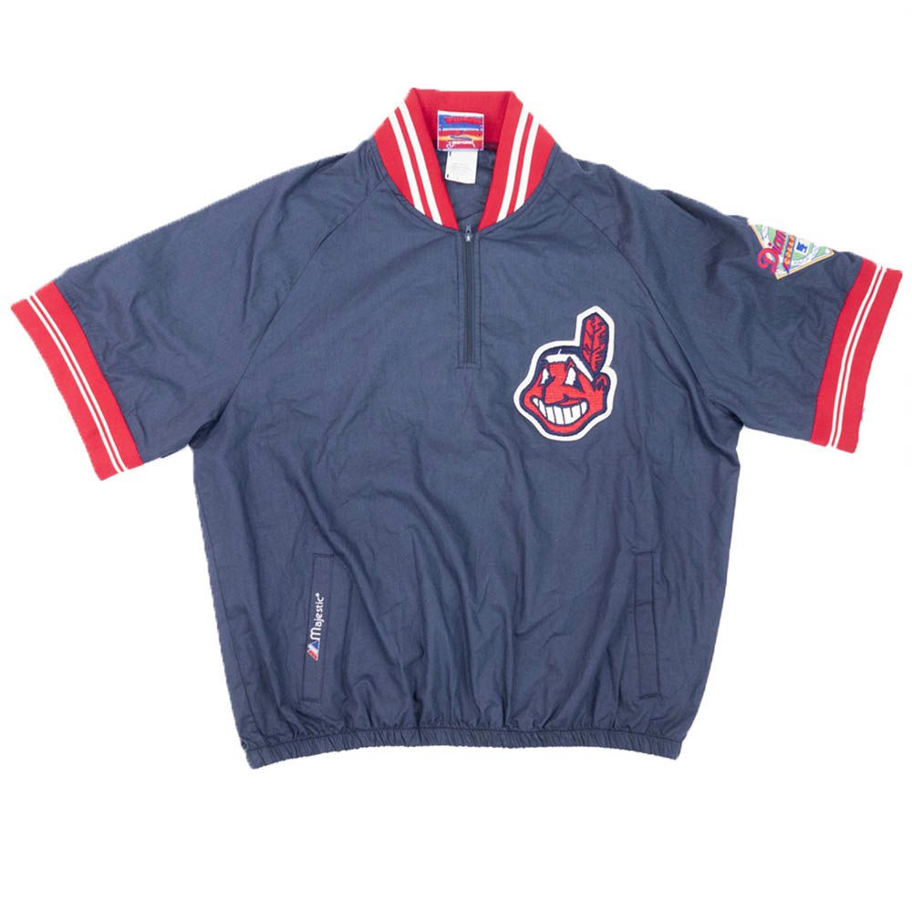 リニューアル記念メガセール MLB クリーブランド・インディアンス ジャケット/アウター Short Sleeve Diamond マジェスティック/Majestic ネイビー