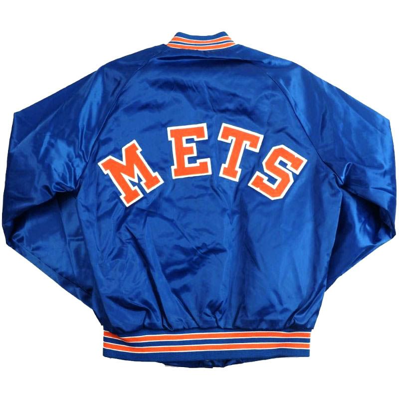 メッツ スタジャン MLB Chalkline ロイヤル オレンジ メンズ 長袖 アウター ジャケット サテン 1点物 デッドストック
